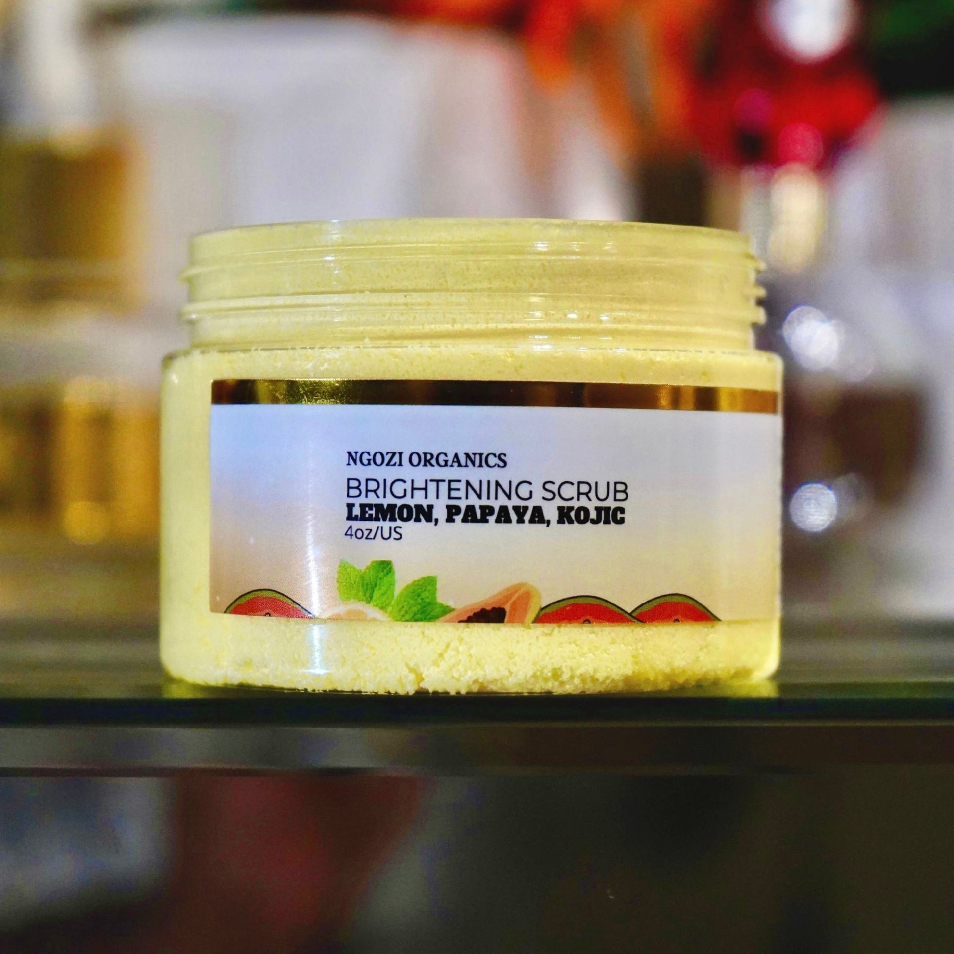 Give your skin its best summer ever with this refreshing kojic acid scrub. The lemon essential oil offers a great Island tropical scent, while the papain and sugar gently exfoliate. Ideal for oily non sensitive skin, clears dark spots and hyper pigmentation. Use it under your arms and they will brighten in just few weeks.