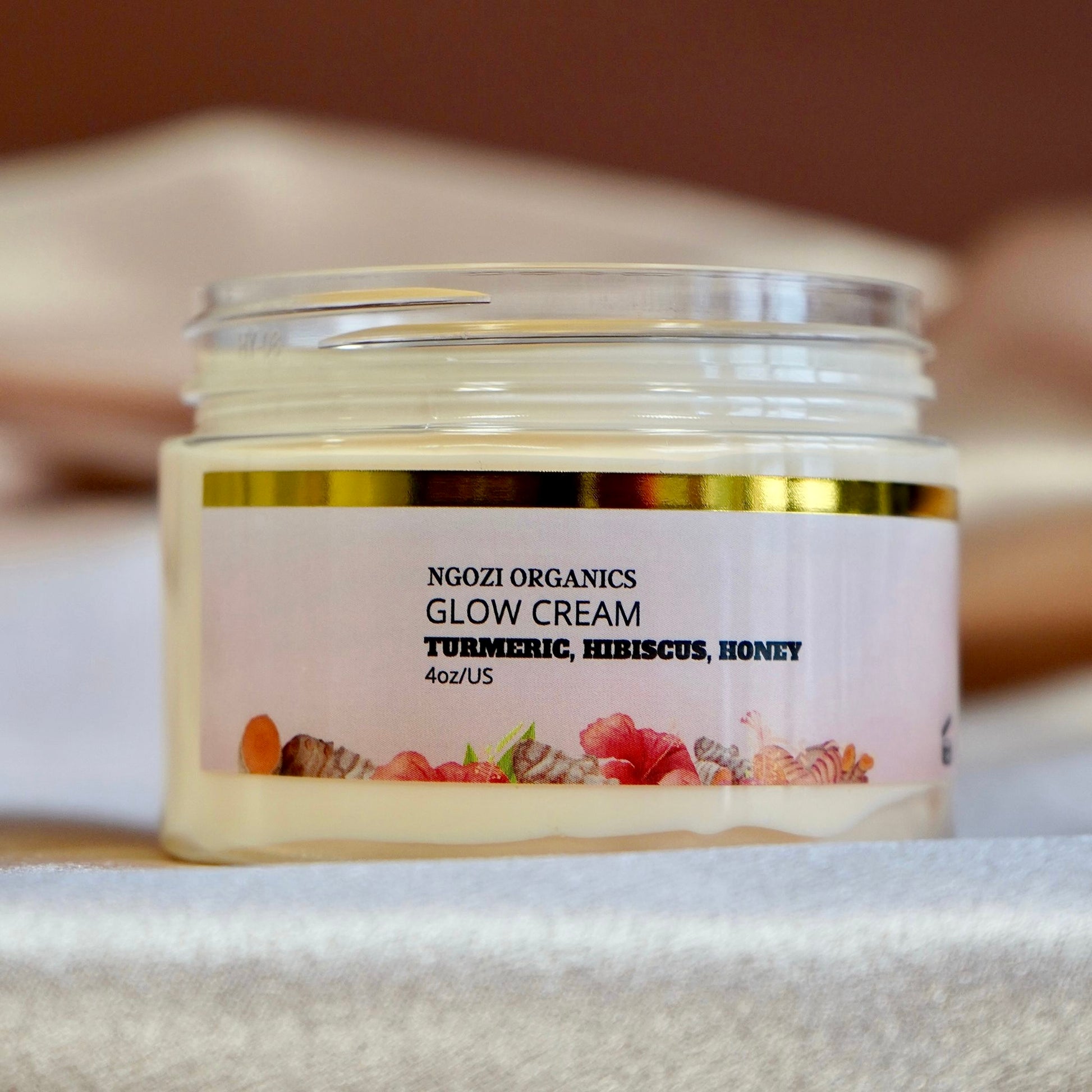 Shea butter, mango butter, distilled water, emulsifying wax, raw honey, hibiscus extract, turmeric extract, rooibos tea extract, sandalwood extract, jojoba oil, rosehip oil, vitamin E, Optiphen